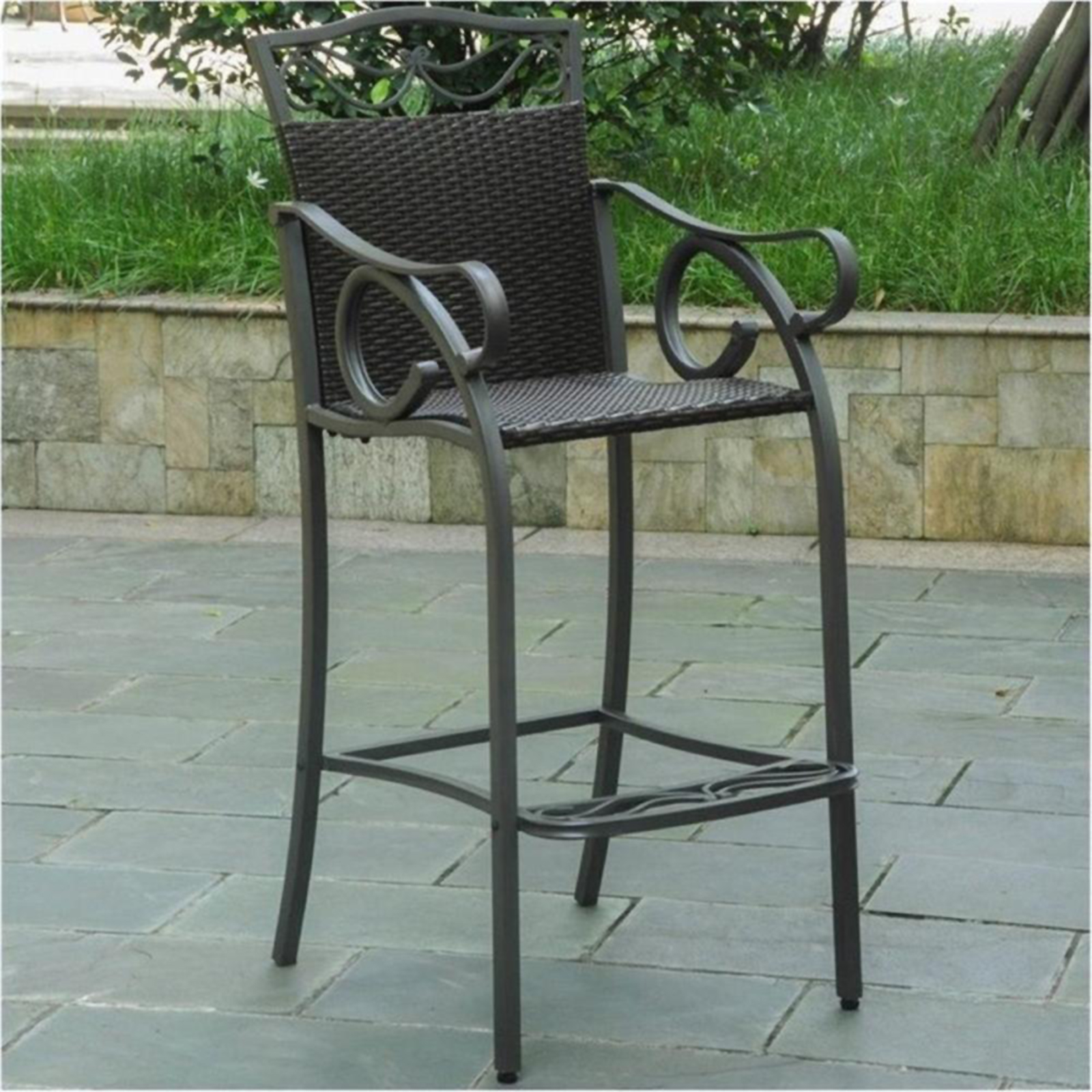 Lovely All Weather Outdoor Wicker Bar Stool Black Teak Wood In Style