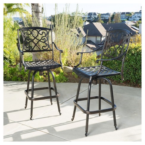 Santa Maria Set Of 2 Cast Aluminum Patio Bar Stools Shiny Copper